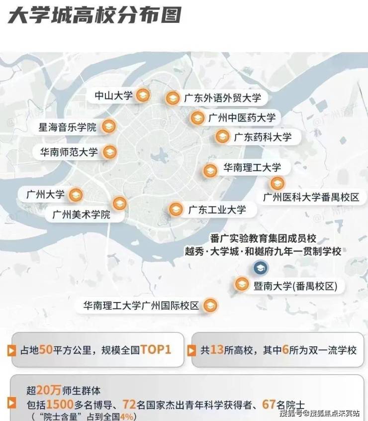 其中,华南理工大学国际校区、暨南大学番禺校区、广州医科大学二期等高校均落户于此,营造出浓厚的学习氛围。