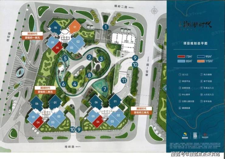 景愉府户型包括73㎡两房两厅一卫、85㎡三房两厅一卫、95㎡三室两厅两卫和115㎡四房两厅两卫。