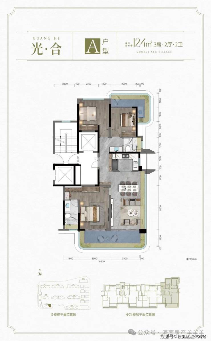 A户型: 建面约124㎡ 3房2厅2卫