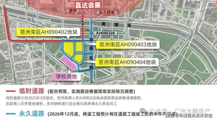 一是临时道路,会搭设黄埔涌便桥,连接琶洲中区,计划2025年约一季度建成;