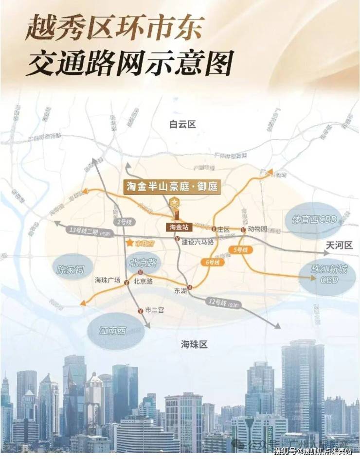 项目离地铁5号线淘金站仅约600百米,5站直达珠江新城。周边还有12号线、13号线2期在建中,主城繁华随心链接。