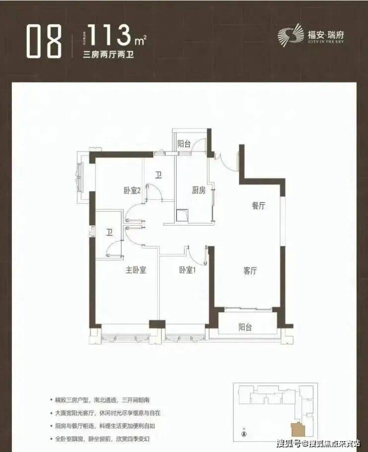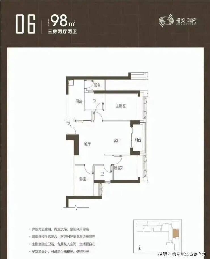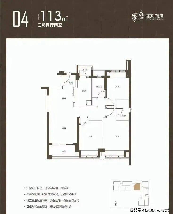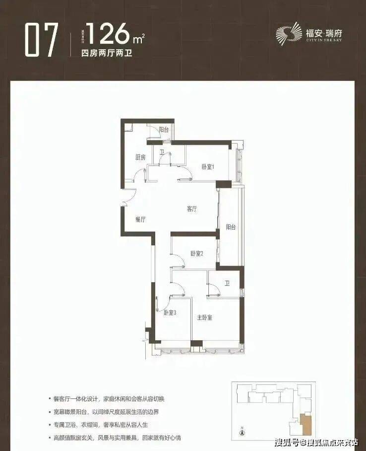 福安瑞府户型图已经公示,主推建面约97-98-112-126-143㎡的3-4房产品。户型均设计有双阳台、双套房。
