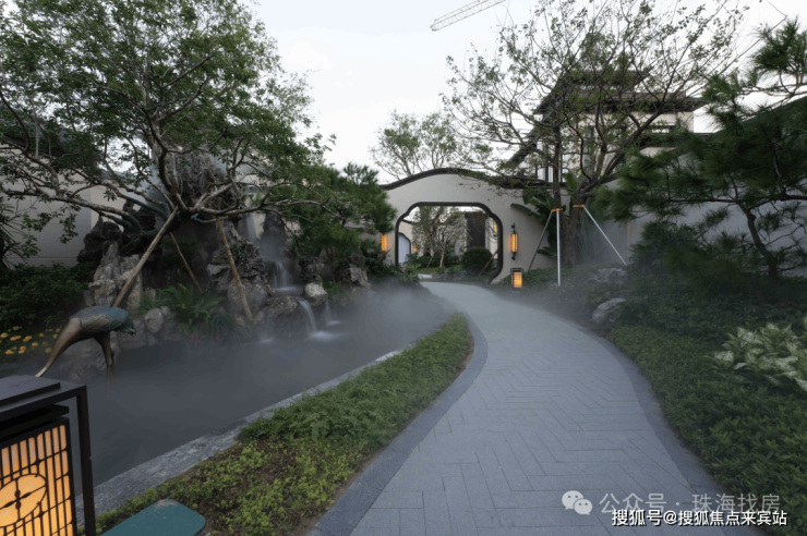园林选用大树、特选老桩等在入园提升价值感,厚重的额绿荫结合热带。风情打造岭南特色诗意情境,凸显典藏级府邸厚重、尊贵的底蕴。