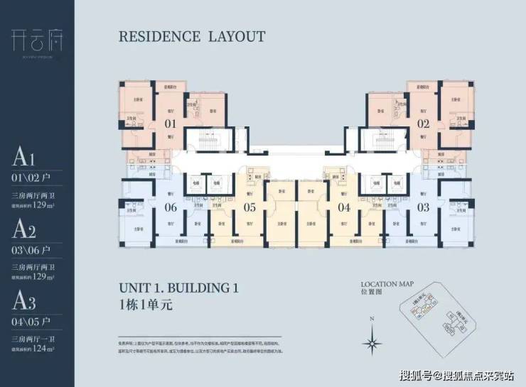 1栋一单元A1、A2户型:面积约为129㎡