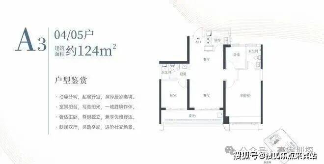 1栋一单元A3户型:面积约为124㎡