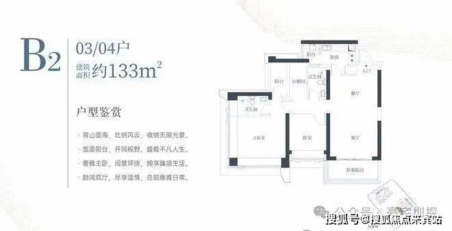 1栋二单元B2户型:面积约为133㎡