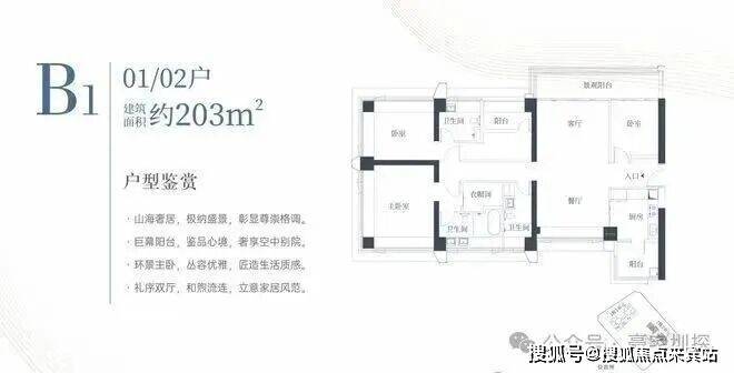 1栋二单元B1户型:面积约为203㎡