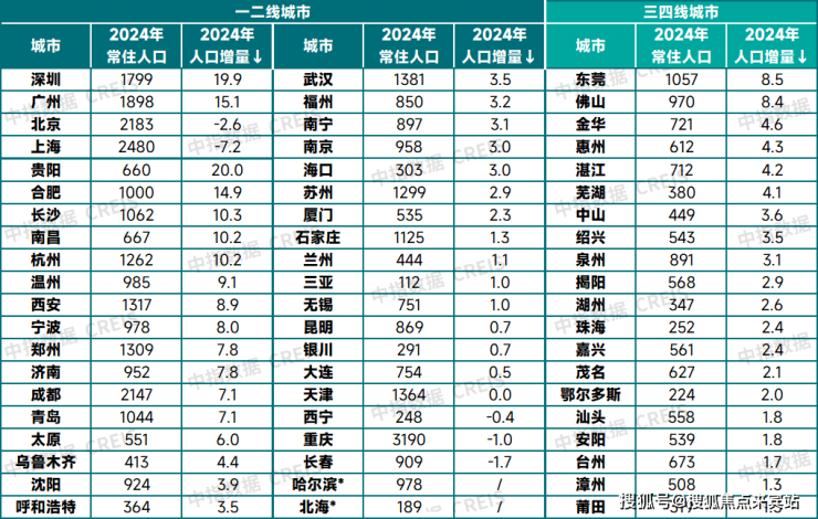 注:部分城市2024年常住人口数据尚未公布,采用2023-2021年均人口增量代替