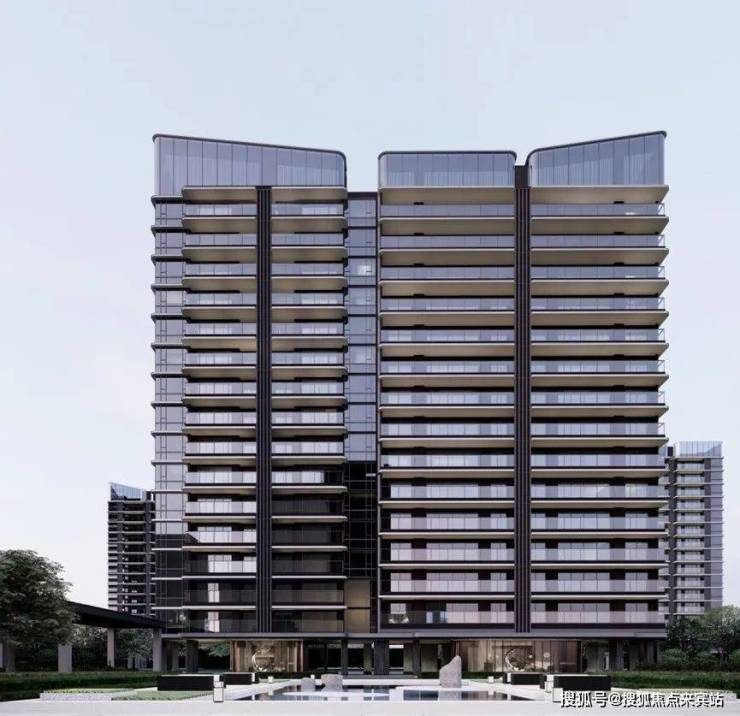 塔楼立面采用横向弧线金属设计,深灰色纵向装饰铝板强调出建筑的垂直线条以及体量感,整体勾勒出现代精工、新锐典雅的气质。大面积通透的玻璃使整个建筑轻盈而优雅,创造良好的景观视野。顶部以简单的手法,为建筑创造了丰富的形体变化,构建出沿河的标杆形象。