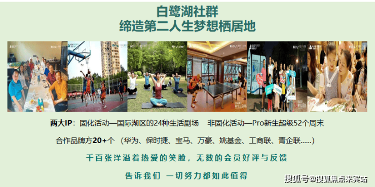 白鹭湖社群截至目前已成立6个认证社群,添加4696户为企微好友,共开展超200场品牌活动,近3千场业主日常活动,参与总人数约5万人次,总曝光量达500万+。在这里,每位业主都以各自的方式从容自在地生活,诠释着什么是“像白鹭湖一样生活”。