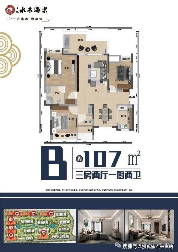 建筑面积约107㎡;3室 2厅 1厨 2卫 大阳台 入户泡池