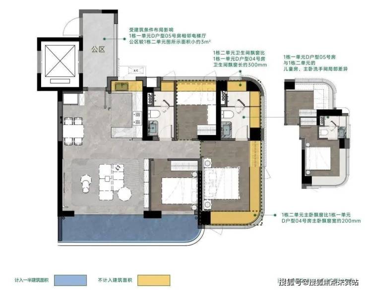 灵动空间格局,因更高的获得感而松弛• 四梯五户,独立电梯厅;• 户户均有南向视野,空间格局通透敞亮;• 270°弧形无柱大尺度飘窗、大宽厅、大阳台,带来更多使用空间。