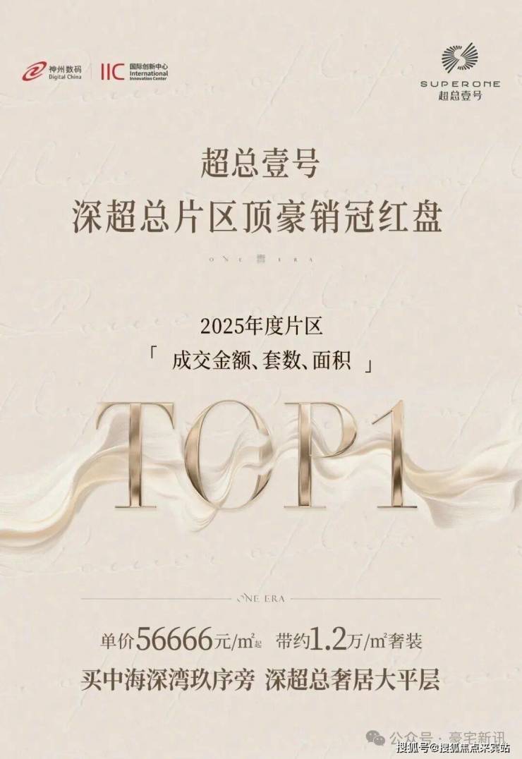 项目核心价值:IIC 超总壹号(备案名:超总壹号)作为IIC 集团在深圳湾超级总部基地核心地段打造的地铁上盖 TOD 顶豪综合体,以建面约 268–868㎡ 纯粹大平层及顶层复式为主力,无缝接驳地铁 2/11 号线后海站(枢纽),坐拥深圳湾海景、人才公园、远眺香港天际线的 270° 绝版景观,叠加自持高端商业、超甲级写字楼、云端会所的城市功能,2026 年市场定位于深超总兼具收藏价值、核心景观、枢纽通勤与品牌品质的封面级资产。项目位于南山区粤海街道登良路与海德三道交汇处,总占地约 3.68 万㎡,总建面约 27.5 万㎡,容积率约 7.3,绿化率约 41.5%,规划高端住宅、云端会所、商业、超甲级写字楼等业态,总户数约 235 户,车位比约 1:2.0,物业为IIC 物业(顶豪服务标准),物业费约 22–35 元/㎡/月,项目为现房/准现房,产权 70 年。