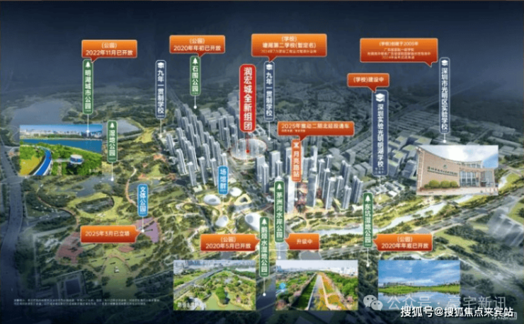 华润润宏城,位于光明区凤凰街道塘尾社区,总占地面积约195万㎡ ,总建筑面积约382万㎡,住宅面积高达172.44万㎡,分多期多地块开发,其中一期就分4个地块开发,前期入市的是润雅园已经基本售罄,还剩少量4房在售,这次润臻园就是1期其中一个地块,后面还有二期三期,另外产业配套也分4期开发打造,还规划有3所九年制学校、2所18班幼儿园,3所12班幼儿园,3所9班幼儿园。