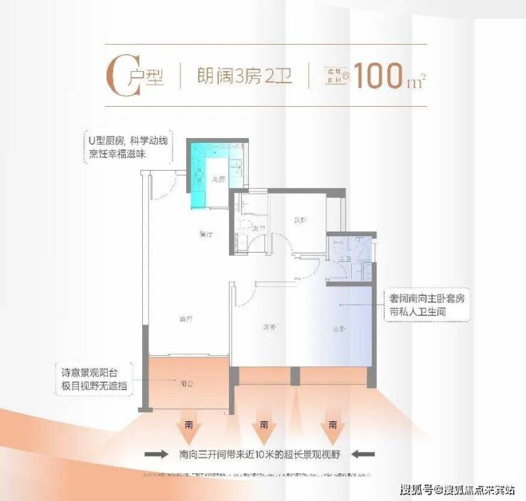 南向三卧室,通透采光,拥揽阳光的滋养,享受四季的诗意人生。客餐厅一体设计,空间更加宽阔、居家动线更为合理。厨房U型布局,人性化烹饪动线无缝衔接,“取、洗、切、炒”操作便捷。套间主卧,步入式衣帽间,收纳品质生活。