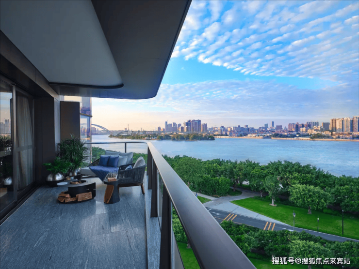 从阳台往外看的第一眼就是繁华城景与江景汇聚的城市眼界,城市繁华与江景静谧兼得,象征事业与生活的平衡圆满。