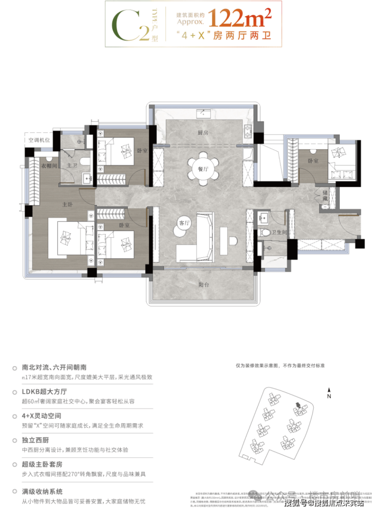 “四维”分别是:全南户型、全域架空、智能调节、高性能外窗。