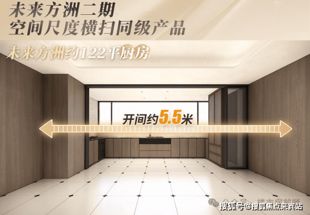 并且其厨房开间竟阔达约5.5米,要知道,常规120+平面积段的厨房,开间通常只能做到3米左右!