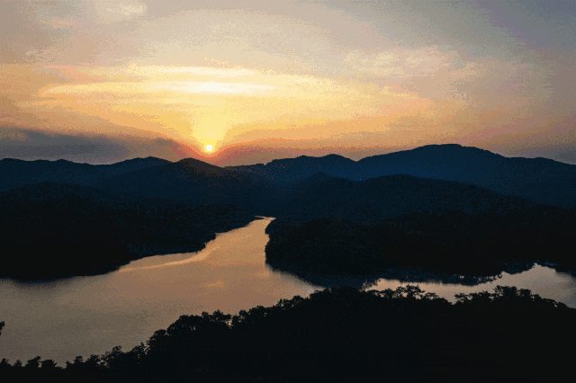 置身山湖之间,在流动的光影中