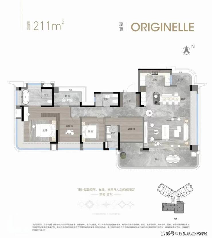 休憩区、步入式衣柜、多功能区、L型大飘窗等场景都有规划,居住尺度完全是按照豪宅的做法,仪式感和实用性满分。