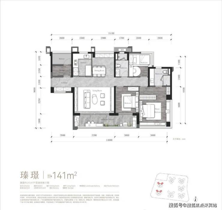 141m²:东南~南北对流双阳台,单价4.9-5.3万/m²,总价690-740万。