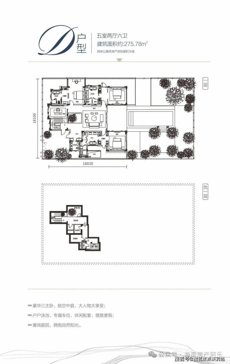 D户型:五室两厅六卫 / 建面约275㎡