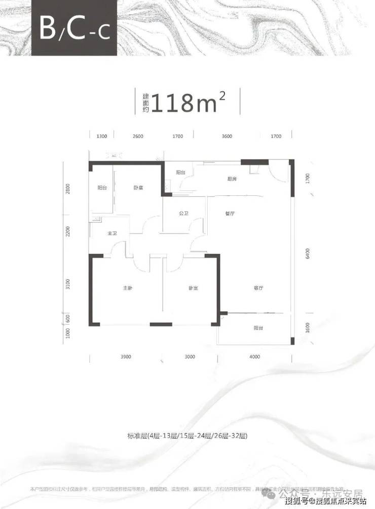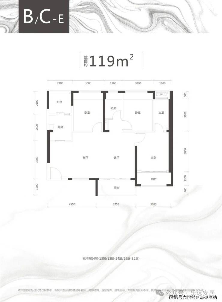 C栋B/C/E户型、约118-119㎡三房两厅两卫