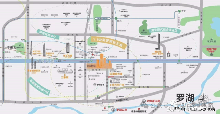项目直接连接1/3/5号线的老街站(日均人流量约22万,全深圳最高),以及正在建设中的5号线西延线建设路站。在一公里范围内,有5个地铁站的年客流量约为1.46亿人次。距离罗湖口岸约1.5公里(日均人流约30万人次),以及文锦渡口岸和莲塘口岸;罗湖火车站的改建和规划中的罗湖北高铁站将进一步加强湾区的联通。人流量是实力的象征!