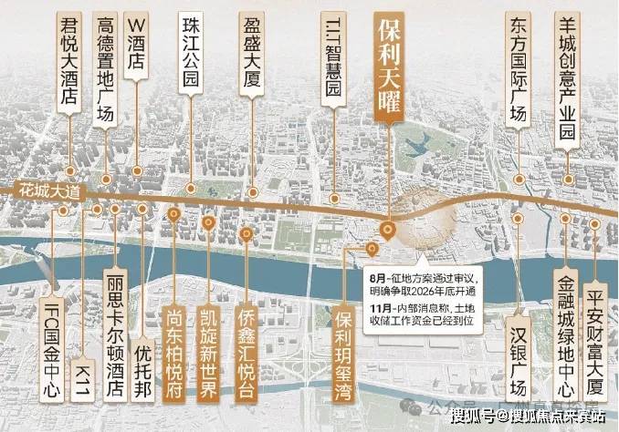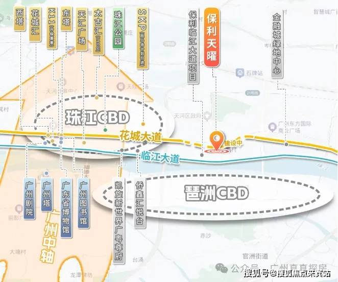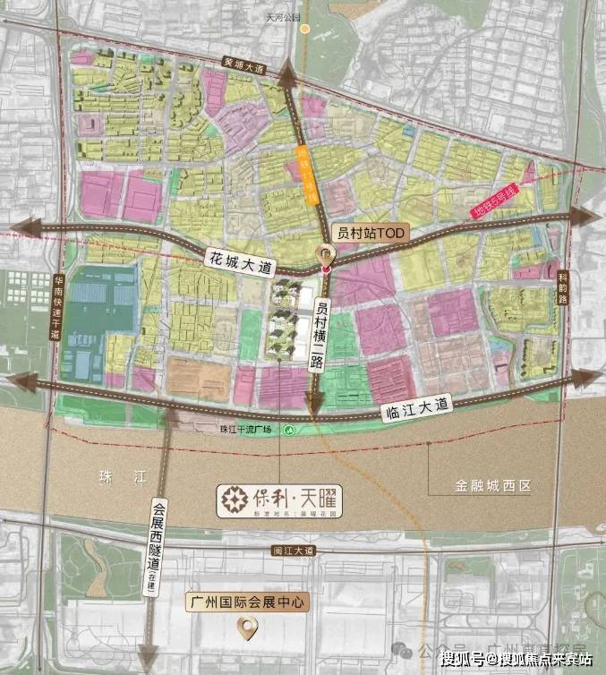 地块位于规划花城大道南侧,紧邻华南快速干线、黄埔大道中、临江大道及科韵路等主要交通干道,这也是天河比较难得的靠近地铁站的盘