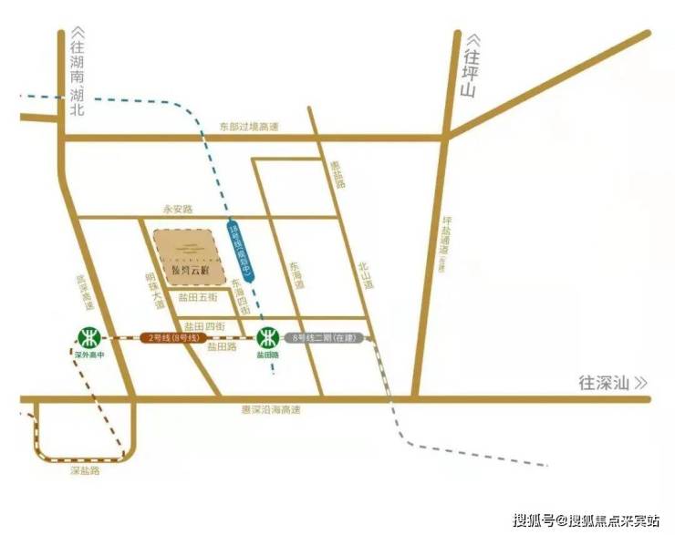 2 号线延长线(8号线一期2020年10月通车)盐田路站直线距离约450米,步行时间约6分钟。