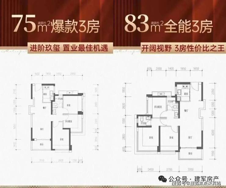 75㎡三房两厅一卫,总价354-370万,单价约4.7-4.91万/㎡