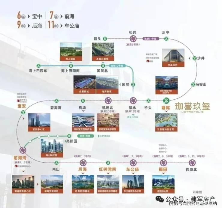 交通配套:步行可达的是地铁11号线塘尾站,衡量地铁配套的价值,不能只看通勤距离,还得考虑线路串联的城市资源,11号线沿途站点都是城市地标级的综合配套,可实现6站到宝中,7站到前海,9站到深圳湾后海,11站到车公庙的快速轨道通行,可以说是“全城精华,一轨直达”。