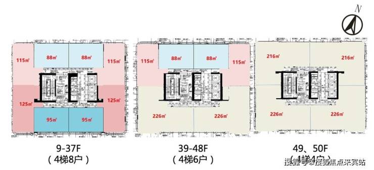 ◎户型建筑面积:约88、95平一房一厅115、125平两房两厅、216、226四房两厅