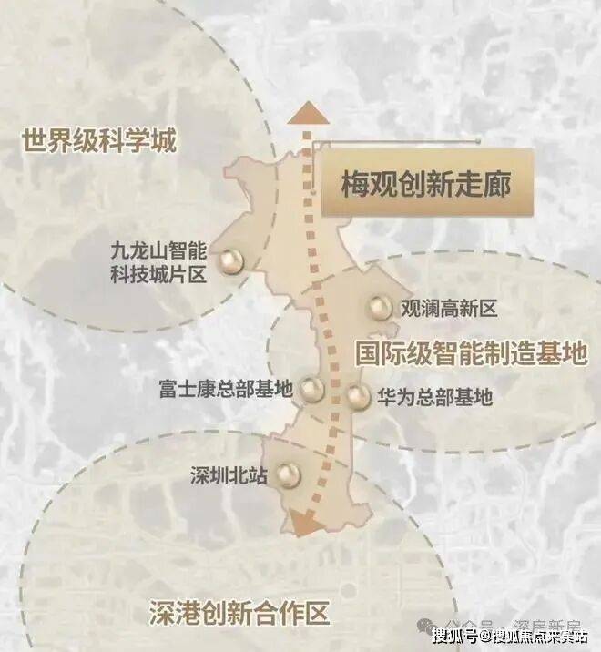鹭湖中心城位于深圳”中优“”北拓“战略的重要节点,占位于“一圈一区三廊”发展格局的产值超万亿的数字经济圈,2019年观澜高新园已纳入国家高新园,成为深圳创新驱动核心引擎。