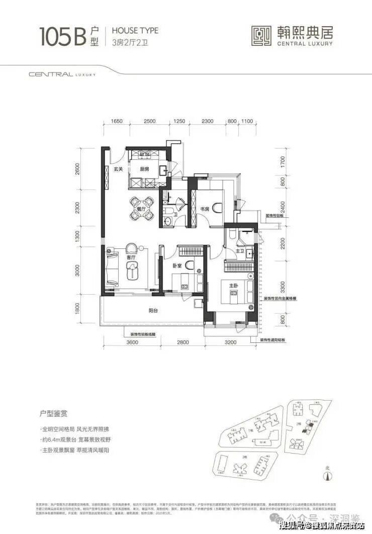 【建面105㎡3居】3室2厅2卫, 东南·南朝向,楼栋分布于2栋