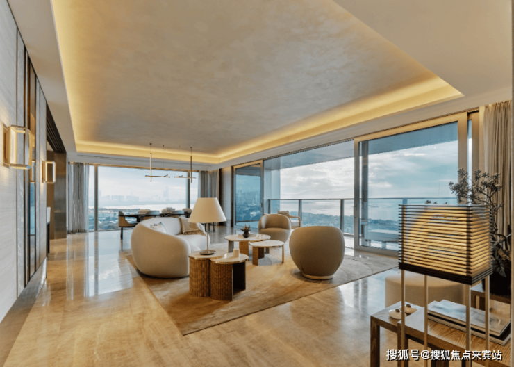 在交通连接上,项目依托“六轨六站”的立体规划网络,可快速衔接多条地铁、城际铁路,实现便捷通达深圳湾口岸、前海合作区乃至香港西九龙,满足了高净值客群高效商务与生活的需求。尤为值得注意的是,在普遍高容积率开发的深超总,该项目以仅3.0的容积率打造了片区近二十年来罕见的低密度纯粹住区,其推出的建面约300㎡-1000㎡大平层产品,凭借约3.6米的层高与开阔的阳台设计,强化了居住的私密性与景观视野。