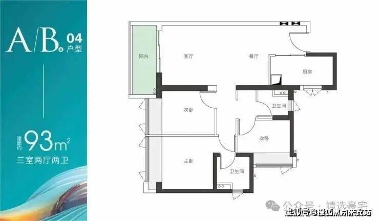 A/B座04户型—建面约93m² 三房两厅两卫