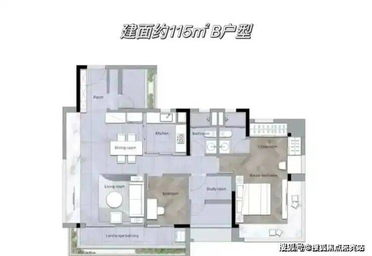 本案最大的优势在于零公摊设计,实用率接近100%,户型利用率远高于市面同类项目。约86㎡的三房采用横厅设计,南向主卧和大阳台配置,空间紧凑但舒适度优越;115㎡户型作为主力产品,面宽近13米,部分户型带步入式衣帽间和超长飘窗,空间感不输更大面积段;