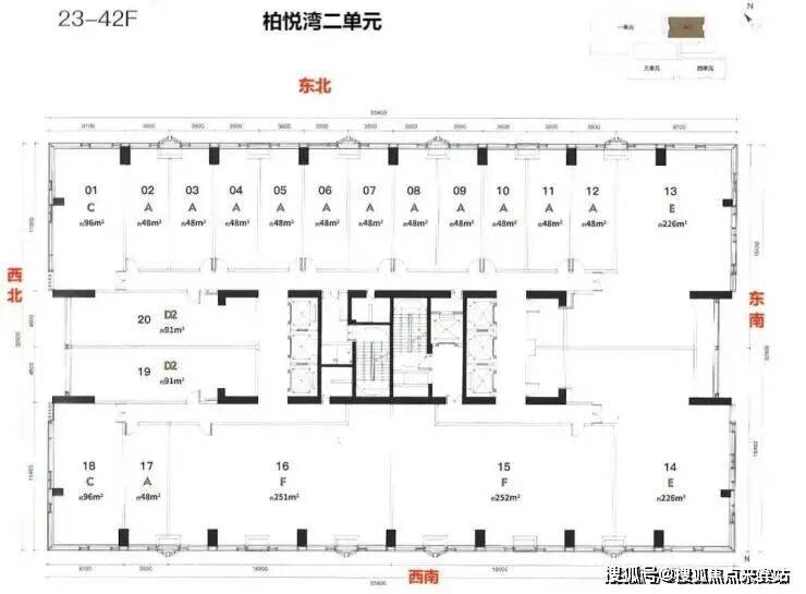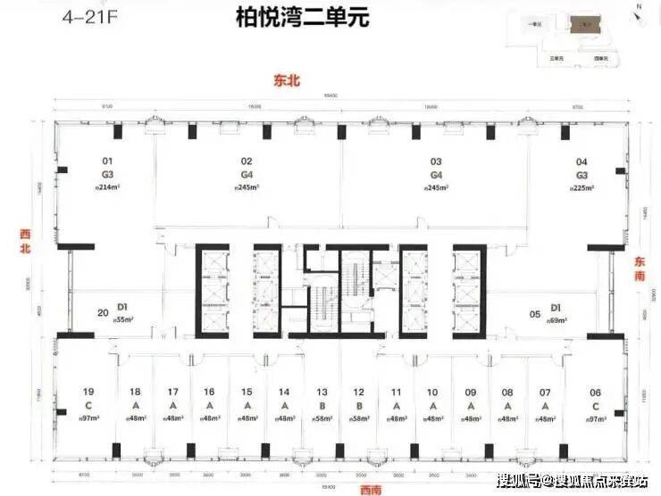 梯户比:公寓5梯24户 商办6梯20户