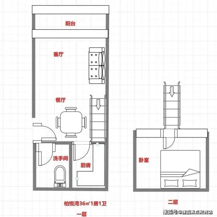 36㎡1房2厅1卫户型图