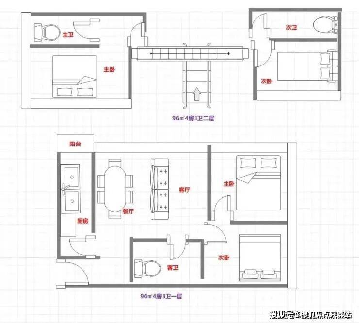 96㎡4房3卫