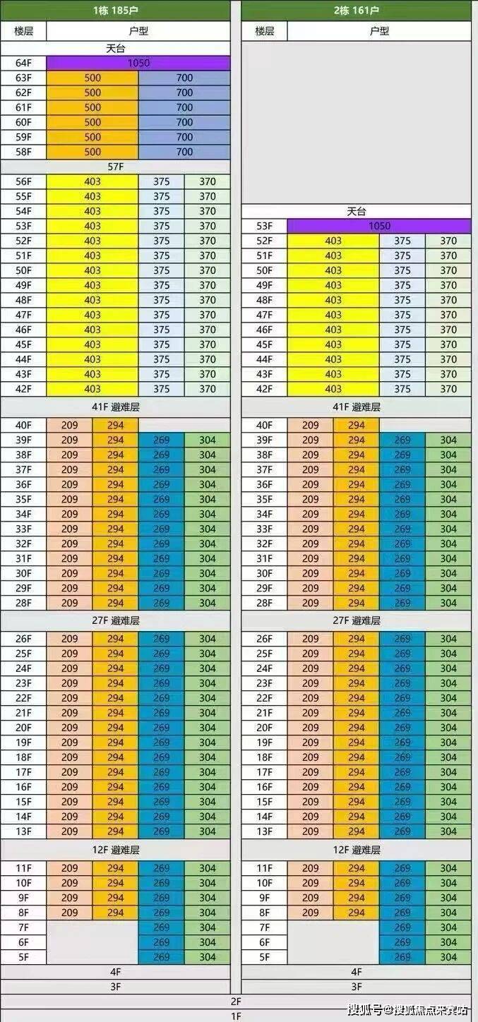 · 超高区58F起(200米以上)是约500-700㎡顶级大平层;