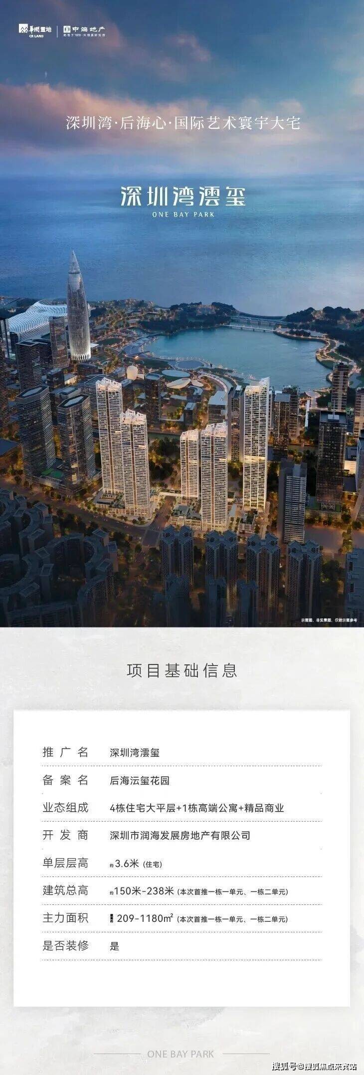 深圳湾澐玺位于南山区粤海街道逸湖二街与后海滨路交汇处,占地3.85万㎡,总建面26.3万㎡,涵盖住宅(17.7万㎡)、商务公寓(7万㎡)、商业(1万㎡)及幼儿园等公配。容积率7.59,限高250米,采用全玻璃幕墙设计,实用率高达约92%以上,主力户型200㎡以上大平层。