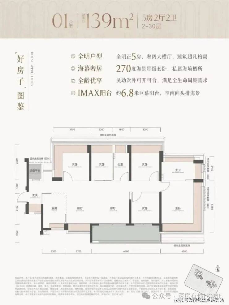 139㎡五房:115㎡升级版,增设次卧,主卧为套房+L型转角飘窗,兼顾尺度与功能。