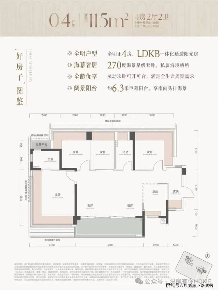 115㎡四房:横厅+餐厨一体,三面采光,几乎无过道浪费,飘窗全屋配置;