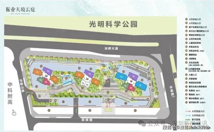振业天境云庭位于光明区新湖街道光辉大道与华夏二路交汇处西南侧,南临安联尚璟府,北侧即是科学公园。