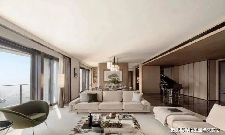 江幕大平层中,尽量留白,让视觉无限开阔,内外通透,也借此更为凸显品质奢宅的品质所选。