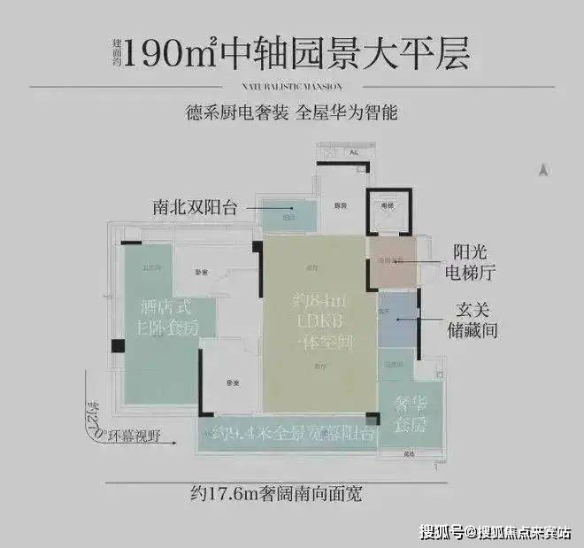 约17米南向面宽,全屋超高窗地比,全南向功能房,主套约270度IMAX级环幕视野