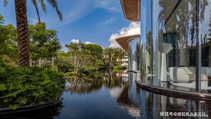 在美学园林中,项目从云、水、林三大自然意向出发,通过全球约200种热带植物的多层次配比,还原繁华城市中的热带雨林,让“如云在天、如水在地、如人在林”的感受成为生活日常。