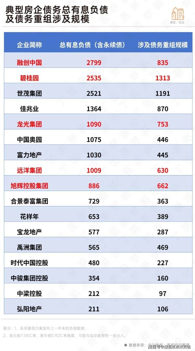 这些房企公布的债务重组方案涉及有息负债规模近1万亿元,包括融创中国、碧桂园、远洋集团、旭辉控股集团,已经基本实现境内、境外债务重组;龙光境内债务重组已经通过,境外债务重组方面,超过80%的同意债权人已加入经修订的整体协议,也接近成功。规模房企债务重组不断落地,加速行业风险出清,也为其他中小企业加速债务重组提供信心。